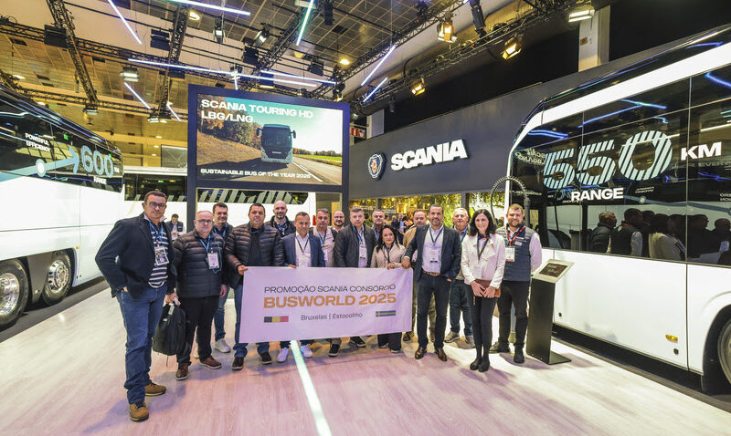 O Scania Consórcio concluiu com sucesso a promoção ‘Busworld 2025’, que proporcionou experiências exclusivas a clientes que atuam no transporte de passageiros. O grupo, que contou com 10 clientes, esteve na Busworld, a principal feira mundial da indústria de ônibus, que foi realizada em Bruxelas (Bélgica), de 4 a 9 de outubro. Além da viagem internacional, um destes clientes também foi premiado com um chassi de ônibus rodoviário Scania K 410 6×2. Foi a empresa Estrela de Minas Transporte e Turismo, de São João Del Rei, cliente da Casa Scania WLM Itaipu, concessionária que representa a marca em Minas Gerais.