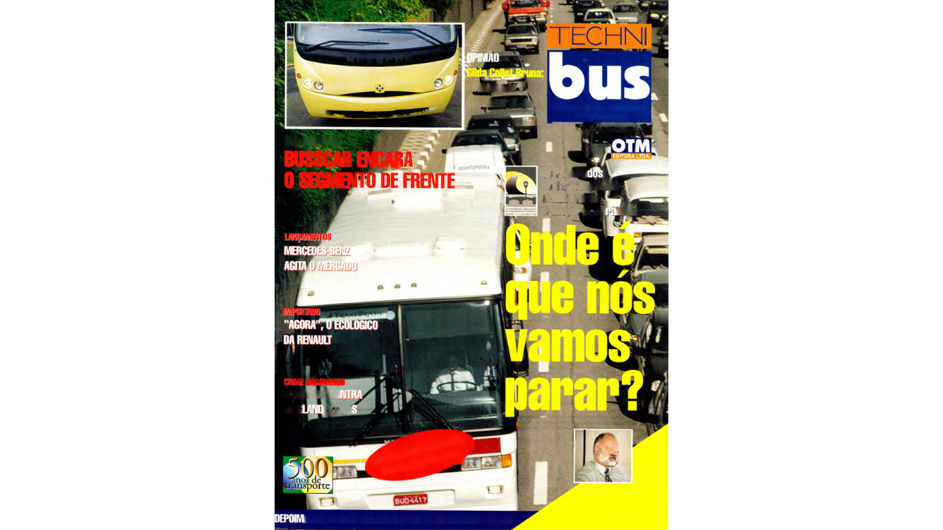 A preocupação com a mobilidade nas grandes cidades deu o tom do 12º Congresso Brasileiro de Transporte e Trânsito, promovido pela Associação Nacional de Transportes Públicos (ANTP), em 1999. A 45ª edição da Technibus acompanhou as principais discussões que ocorreram no encontro. A previsão, na época, era de que o país chegasse a 47 milhões de veículos em circulação nos 10 anos seguintes, ou seja, em 2009. E a projeção estava correta. Atualmente, o Brasil já tem uma frota total de quase 124 milhões de veículos.