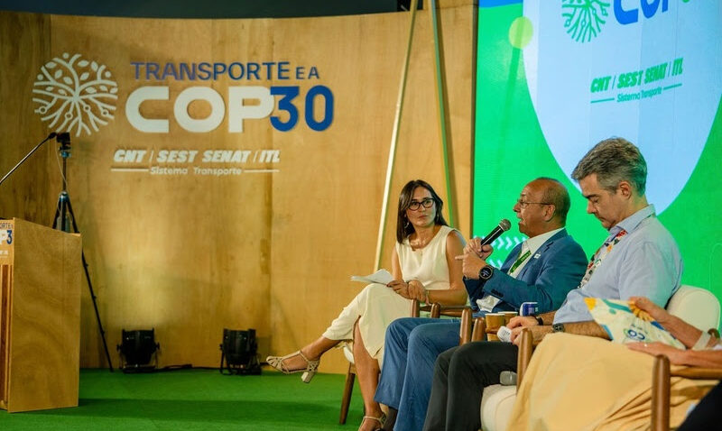 O Sistema Transporte reuniu representantes do setor para debater a redução de emissões de carbono nas operações rodoviárias, hidroviárias, ferroviárias e aeroviárias, em painel realizado na Estação do Desenvolvimento, espaço da entidade na Green Zone da COP 30, nesta terça-feira (11/11). O presidente do Sistema Transporte, Vander Costa, destacou que a transição para um transporte de baixo carbono exige cooperação entre o governo, a iniciativa privada e a sociedade civil.