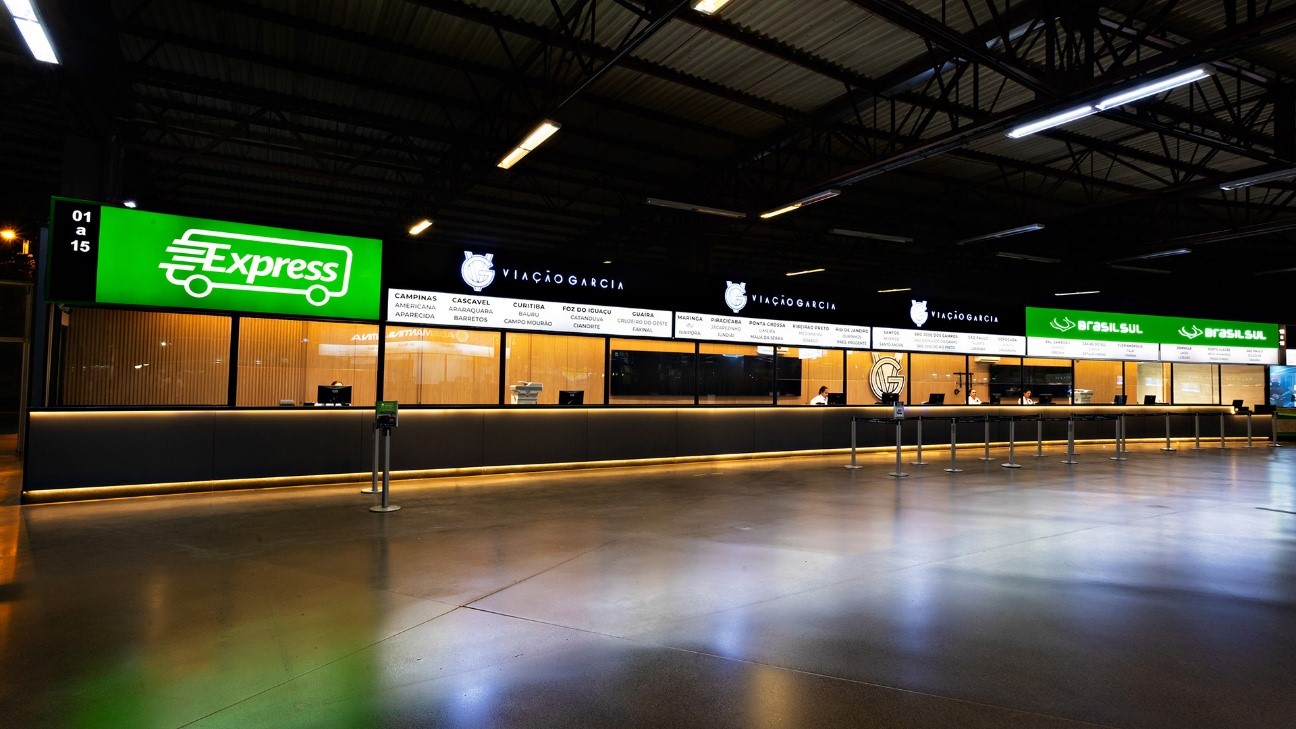 Entre as novidades, estão dois amplos painéis eletrônicos que exibem imagens e informações sobre as cidades atendidas, além da divulgação dos serviços oferecidos pelas empresas. Com acabamento amadeirado e iluminação em Led no balcão de atendimento.