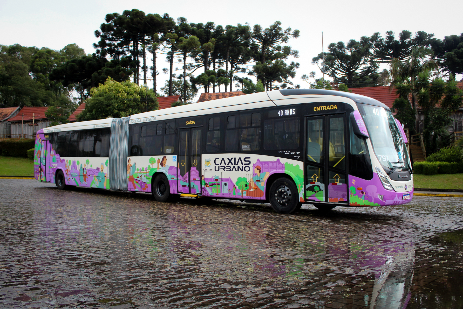 A Visate comemora 40 anos de operação em Caxias do Sul (RS) com um ônibus modelo BRT envelopado, que destaca pontos turísticos da cidade, funcionários e usuários. O veículo, desenvolvido pelo setor de Marketing em parceria com o ilustrador Vini Agliardi e com as empresas Marcopolo e Sulvisual, foi apresentado durante um evento para os funcionários no último dia 7 de fevereiro e circulará pela cidade pelos próximos seis meses. As cores roxo e lilás remetem à inovação e à primeira operação da empresa, realizada durante a Festa da Uva.