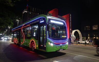 O e-Bus Eletra Padron de 82 lugares conta com chassi Mercedes-Benz, carroceria Caio e baterias WEG