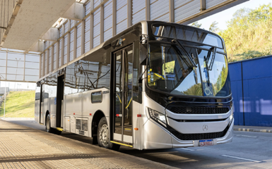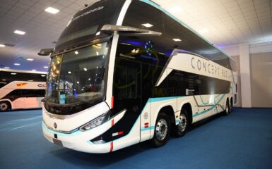 Outro destaque foi o Viaggio 900 de motor dianteiro com 12,7 metros de comprimento e capacidade para 48 passageiros