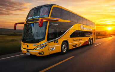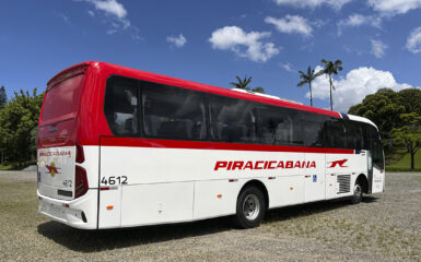 O veículo entregue é o Panorâmico DD NB1, montado sobre o chassi Volvo B450R B6X2