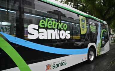O primeiro ônibus 100% elétrico do sistema municipal de Santos entrou em operação em agosto de 2017